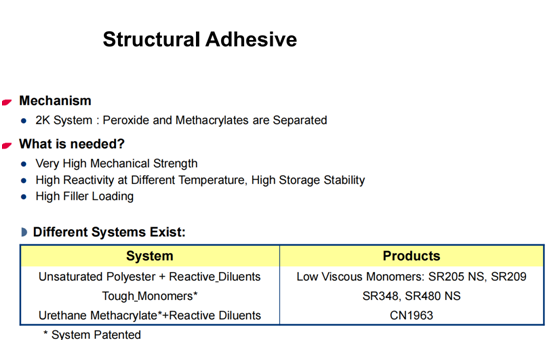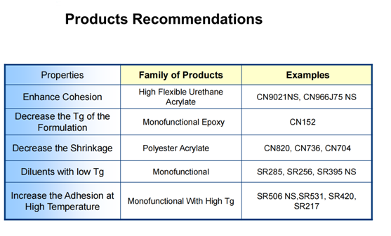 結束語:以上是筆者結合實際應用整理的,得益于Sartomer提供的產品和技術平臺,我們有幸深入到一些UV膠粘劑的應用,UV的魅力是設計的豐富多彩,原材料的種類豐富,而且有不斷的創新產品。不妥之處,敬請指正。